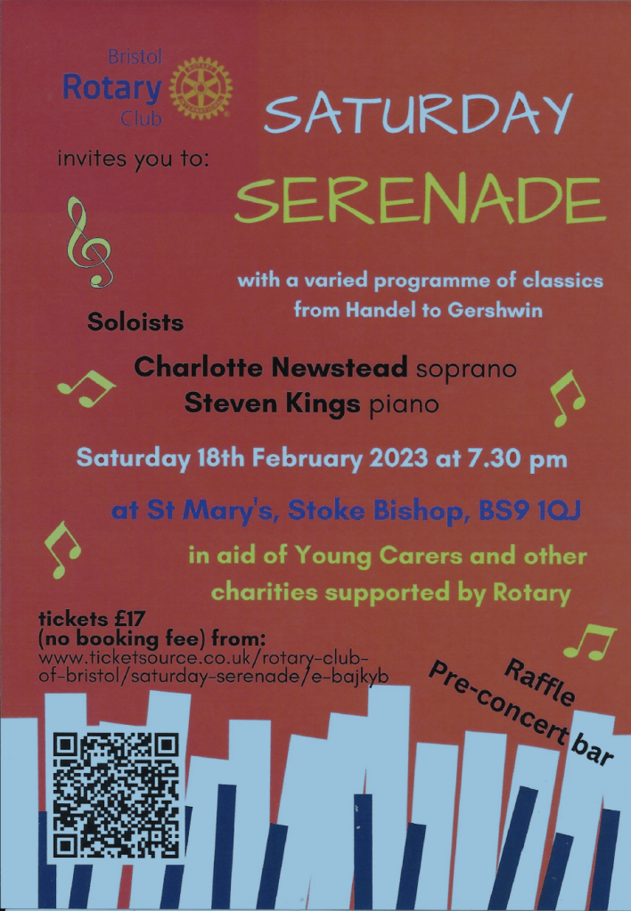 On Saturday, 18th February 2023, Bristol Rotary Club is hosting its ‘Saturday Serenade’ concert at St Mary’s Church in Stoke Bishop in aid of several of the charities it supports.