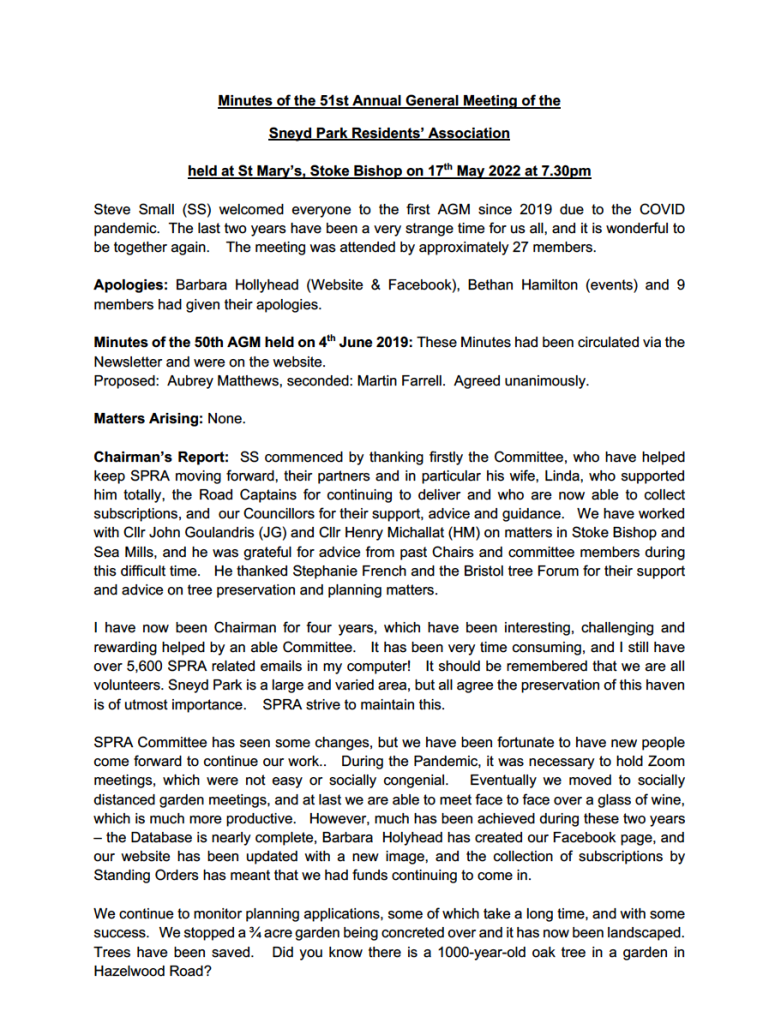 SPRA Minutes of the 51st Annual General Meeting – 17th May 2022: