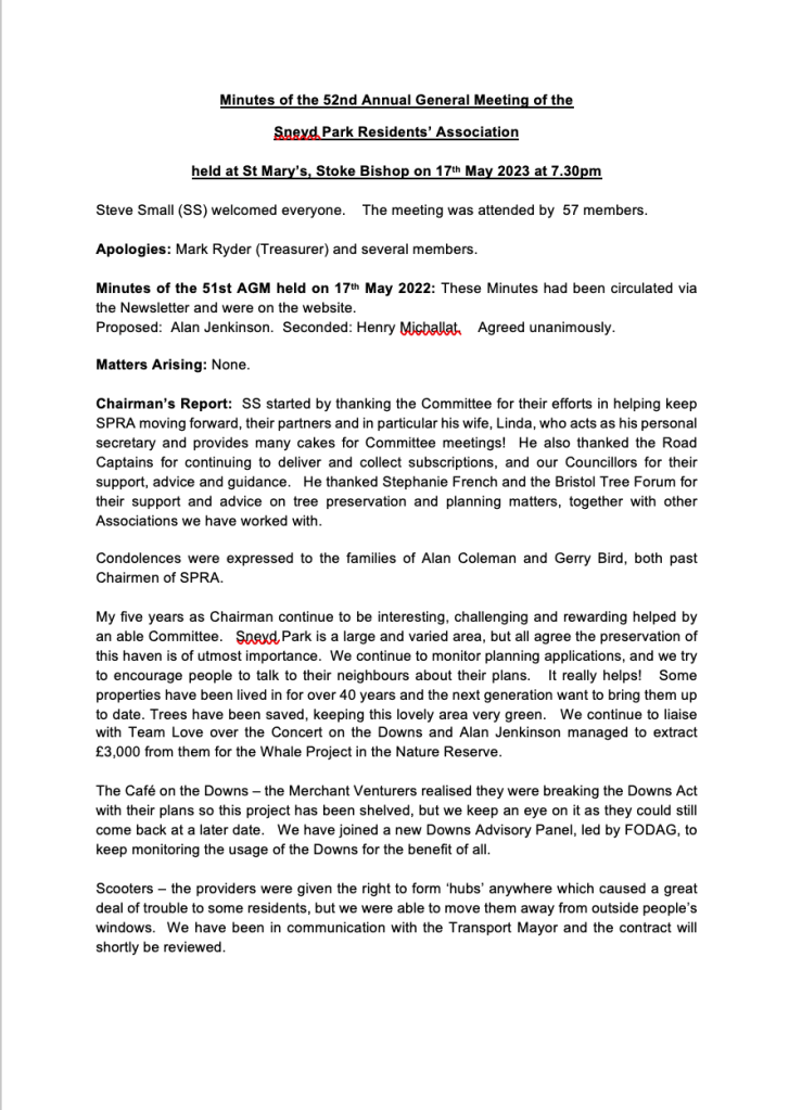 SPRA Minutes of the 52nd Annual General Meeting – 17th May 2023:
